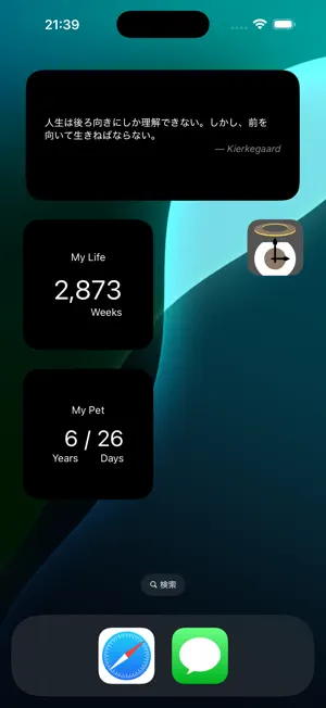 自分の寿命と、今年1年が後何週かを2つウィジェットに置こうと思ったけど、どちらか1つしか表示出来なくて残念。