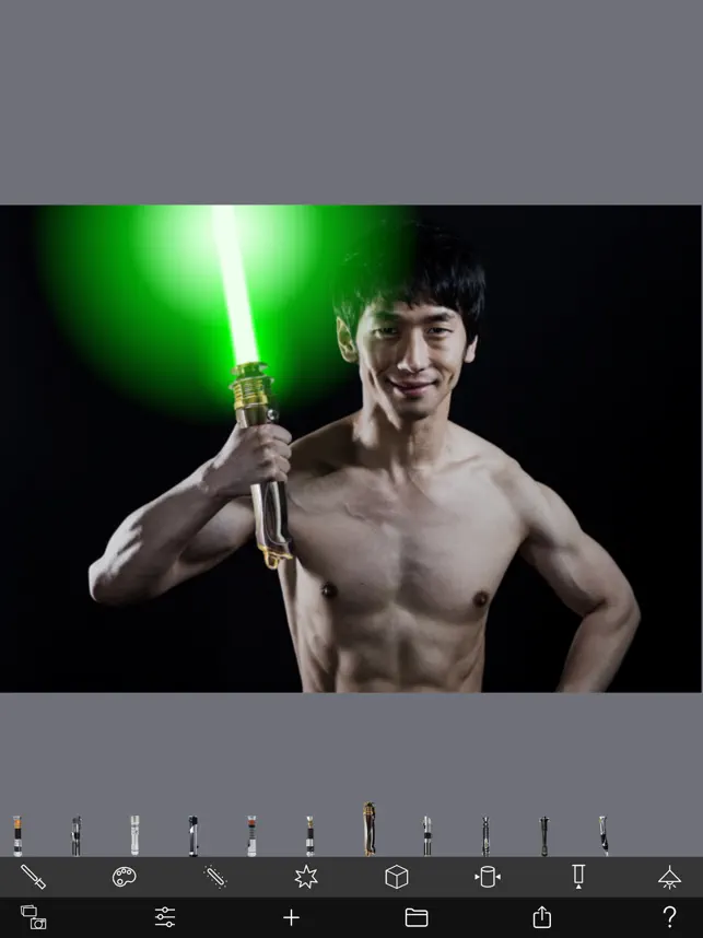 好きな写真に美しく光る「ライトセーバー」を自由に合成できま‏す‎。