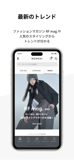 ・ファッションマガジン「RF mag.」で紹介しているコーデや、アパレル店員さんのコーデを参考にしながらショッピングを楽しんだりアパレルを購入したい