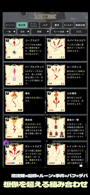 - 魔法陣とバフを連携させ、あなただけのスキルコンボを完成させましょう。