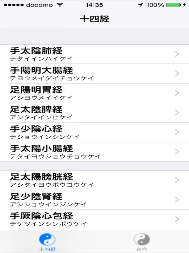 WHO標準経絡に基ずいた、経穴アプリ。各経穴(361穴)の位置、主治、筋肉、神経、血管が表示、