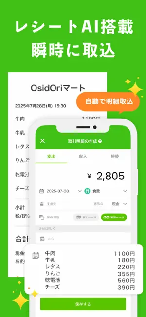 3. AIレシート機能で、秒で明細が作れる