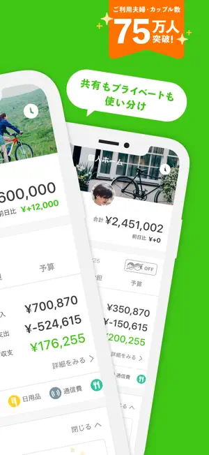 78万人以上が利用する "夫婦・カップルのために作られた" 共有家計簿アプリ決定版!