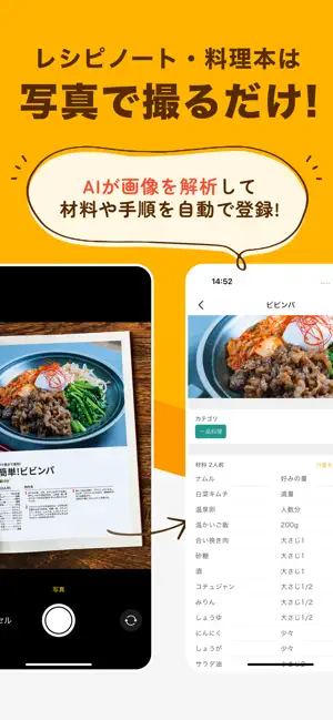 * レシピ本の写真をアップするだけで内容を自動的に取り込んでくれる!