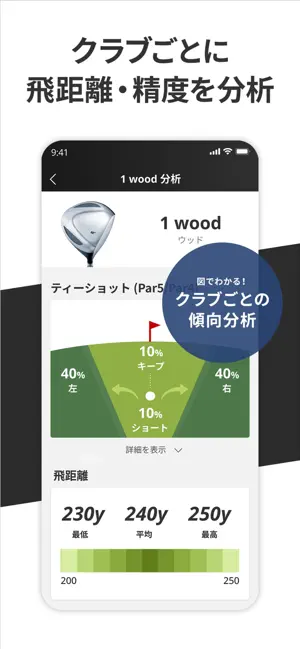 ■クラブ分析 飛距計測時に使用クラブを登録すると、クラブごとの飛距離を確認することができます。