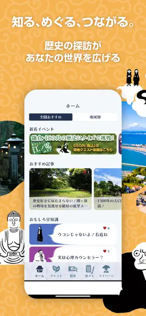 - 日本全国47都道府県に対応した歴史ミステリー・クエスト(謎解き)が楽しめます。