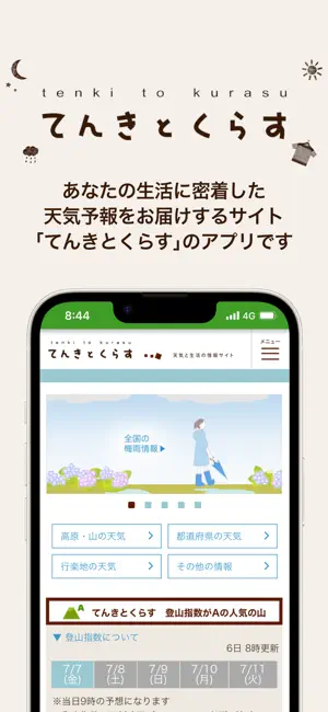 生活健康に役立つ天気予報サイト「てんきとくらす」がもっと便利に見られるアプリです!