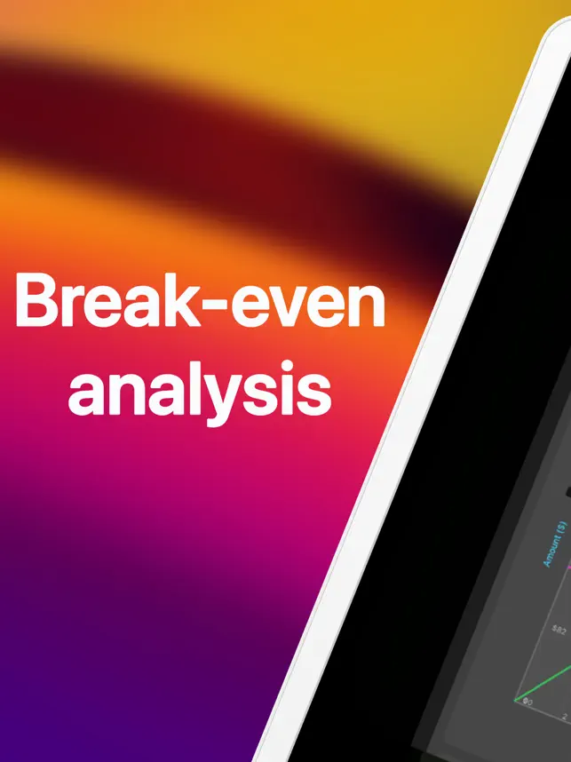 • 損益分岐点分析:固定費、変動費、数量、売価のいずれか 3 つを入力すると、4 つ目が即座に表示されます。