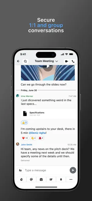 – Communicate with your teams through private or group conversations – Share and collaborate with files, documents, links with reactions – Press the one-click conference call button and your voice or video meetings starts on time – Invite partners, customers and suppliers to collaborate through the unique guest rooms – Increase privacy through ephemeral messages and device fingerprinting – Integrate Wire with your corporate applications and services – Recognized by IDC as industry leading security and privacy approach through Open Source, end to end encryption, forward secrecy and public audits
