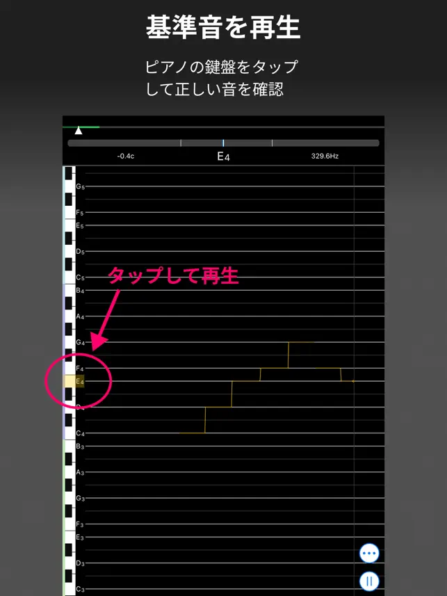 また、ピアノの鍵盤をタップすることで‏、‎正確な音を再生することもできま‏す‎。