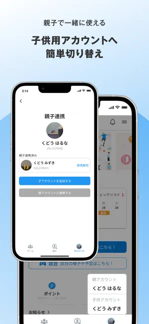 スマホ1台で保護者とお子様のアカウントを瞬時に切り替えて操作できます