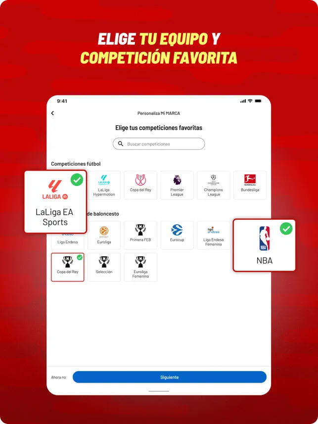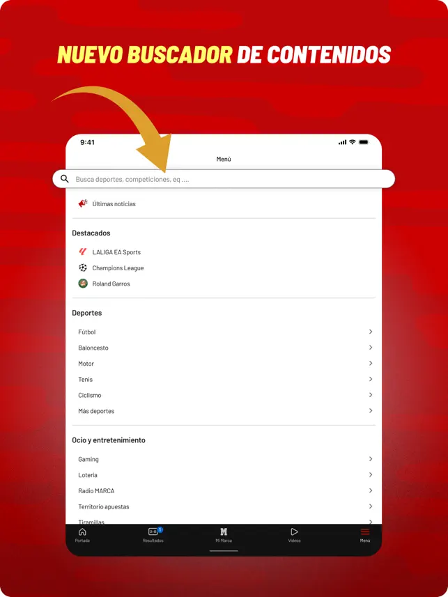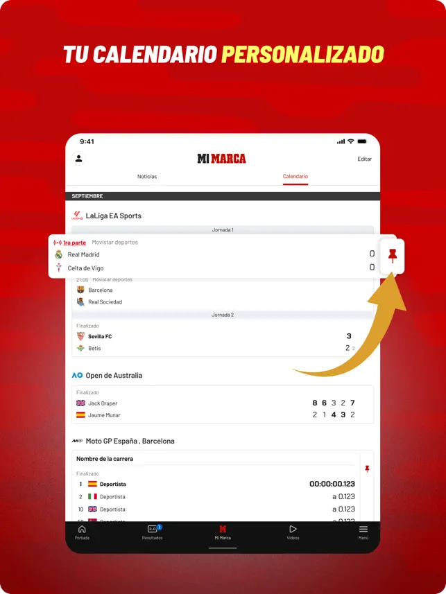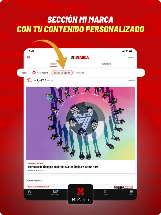 - Personalizar tu experiencia con la sección MI MARCA, eligiendo deportes, competiciones y equipos favoritos.