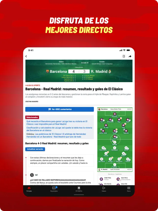 La app MARCA, el diario deportivo líder y medio deportivo número 1, te ofrece toda la actualidad deportiva al instante. Con MARCA accede a las últimas noticias deportivas en tiempo real, sigue el fútbol en directo, partidos en vivo, resultados y clasificaciones. Consulta el marcador en tiempo real, estadísticas deportivas, resúmenes de los mejores goles y análisis detallados.