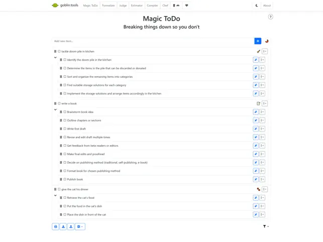 This is an app version of the free website goblin.tools, a collection of small, simple, single-task tools, mostly designed to help neurodivergent people with tasks they find overwhelming or difficult.