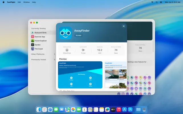 TestFlightを使用すると、アプリのベータ版やApp Clipを簡単にテストして、App Storeでのアプリのリリース前にデベロッパに貴重なフィードバックを提供できます。デベロッパはメールまたはパブリックリンクを使用してテスターを招待できます。