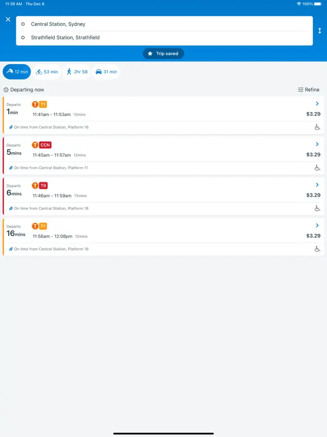 Key features: - Manage and top up Opal card on the go: Register your Opal card to check your balance, top up or set up auto top-up. - Track Opal and Contactless payment activities: Review your Opal and contactless payment travel history and fares. - Simple trip planning: Plan your trip via public transport, cycling, walking, or driving, set your favourite trips and locations, and check public transport fares. - Check departure times at a glance: Check public transport departure times for train, metro, bus, light rail and ferry services. - Get live trip update: Receive service update, disruption and on-the-go hop off alerts for your trip.