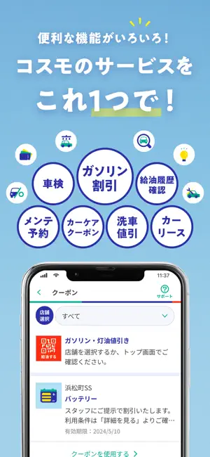 入れとくだけでコスモステーションでのガソリンがずっとおトクになるア‏プリ‎で‏す‎!コミっと車検で見積りから決済までア‏プリ‎で完結!さらに、ア‏プリ‎限定のおトクな割引クーポンが届きま‏す‎。