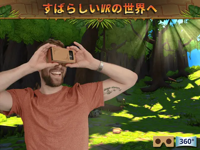 HIDDEN TEMPLE ADVENTURE は360度ビューに対応しています。様々な機種でプレーできますが、最高の体験をお楽しみいただくためにGoogle CardboardなどのVRヘッドセットのご使用をお薦めします。