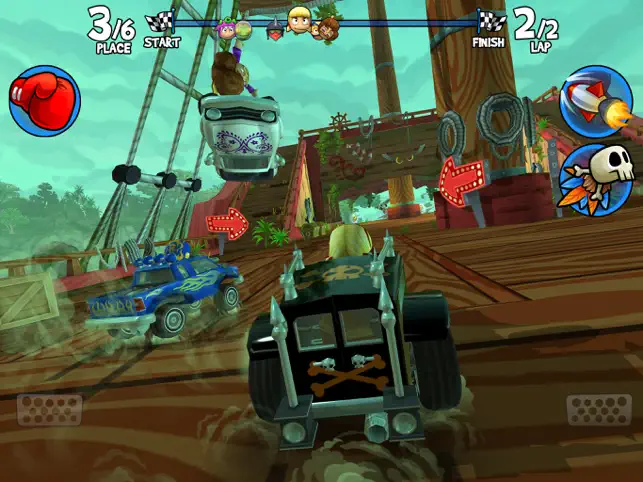 Beach Buggy Racing リーグに参加して、世界中のドライバーやマシンと競争しよう。エジプトのピラミッド、ドラゴンが巣食う城、座礁した海賊船、エイリアンの実験研究所、すべてのコースを駆け抜けろ。楽しくユニークなパワーアップを収集&アップグレードしよう。新しいドライバーを雇い、ガレージをクルマでいっぱいにして、トップを目指して大爆走!