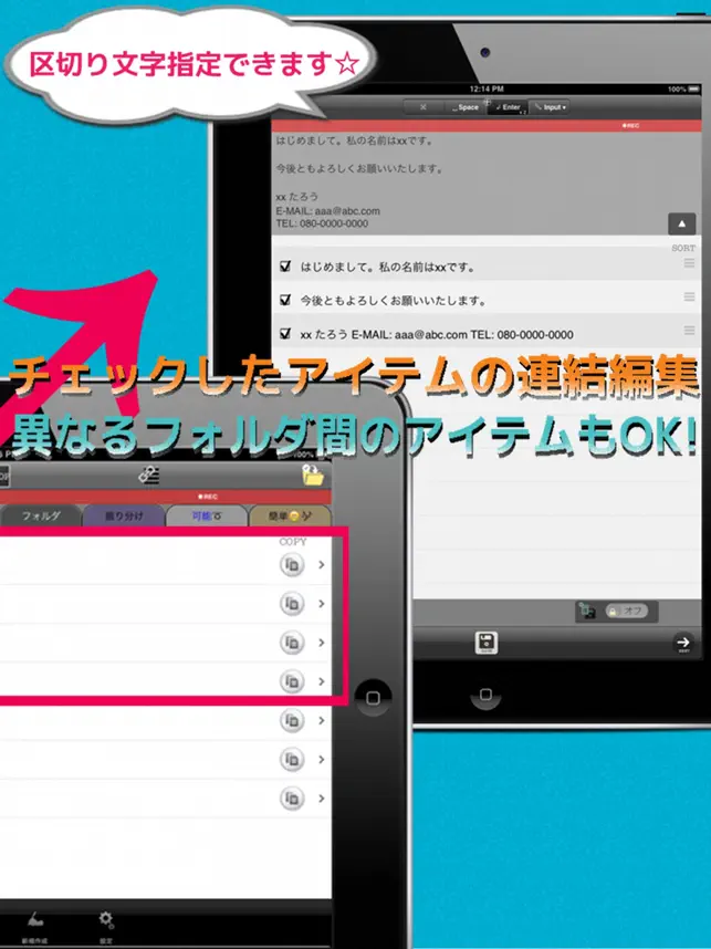 - 便利 『他アプリでのテキストコピー保存』『フォルダ分け』『バックアップ』可能