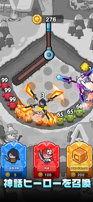 「召喚」をタップするだけで次々とヒーローを呼び出せる!たくさん召喚して神話級ヒーローに合成しよう!最強チームを自分の手で作り上げろ。