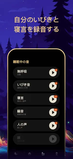 睡眠アプリ「SnailSleep」。いびき測定、睡眠障害、無呼吸症候群対策。睡眠計、スマートアラーム、睡眠メディテーション、睡眠BGM。