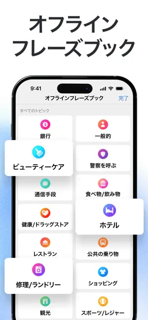 空港、ホテル、ガソリンスタンド、スーパーマーケットなどの場所で自由にコミュニケーション可能で‏す‎。海外で道路標識を読んだり、海外で購入した製品のマニュアルを翻訳したり、またはすでにスマートフォンに保存されている写真のテキストを翻訳しましょう。あなただけの通訳をポケットに入れて、あらゆる場面の翻訳に使用しましょう!