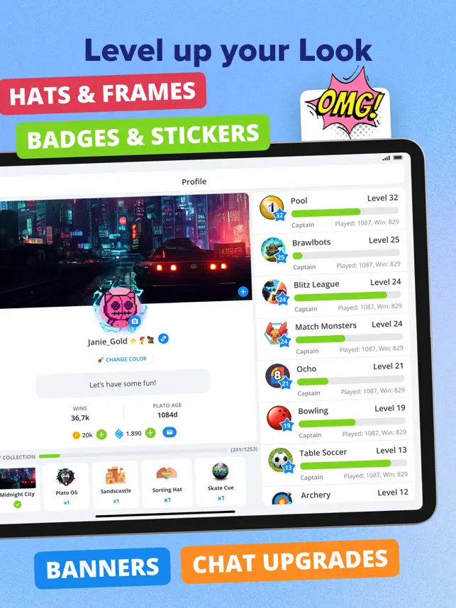Fun, nice but not satisfactory Nice graphics and playable easily, plato lack for a balance system for game matching. Not only is very common your opponent be too much skilled or totally new on this platform but also there’s no way to disable chat options during the match. It is common to receive messages from rude people with bad words(even partially censored), bad loser and bad winners and others using it for flirting which is a concern for those allowing underage children to play. There’s a system to report and block profiles that doesn’t do what it supposed to do. I was matched several times against profiles blocked. It only doesn’t allow you to receive messages. Finally, there are paid users and ranking. Pay for advantage in some games is cheating. Not only cosmetic skins in some cases. Plato team could and should take care of their settings to segregate players who doesn’t want to be contacted and a proper balance for match players. There are people with 8k wins playing against other with less then 100!