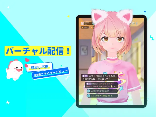 LIVE 配信では、初心者でも簡単に歌ったり、ダンスしたり、食事したり、おでかけしたり、お話したり、あなたの日常を配信できる!