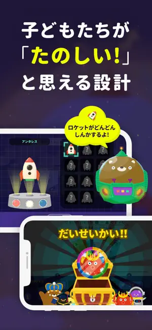 1日10分程度の制限機能があるので、楽しみつつもやり過ぎす、子どもの意欲が持続します。タブレットやスマホを長時間使わせたくない保護者の方にも安心です。