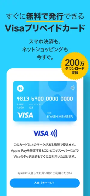 1)アプリをダウンロードし、Kyash Visaカードを発行(リアルカードは別途お申し込みが必要です)