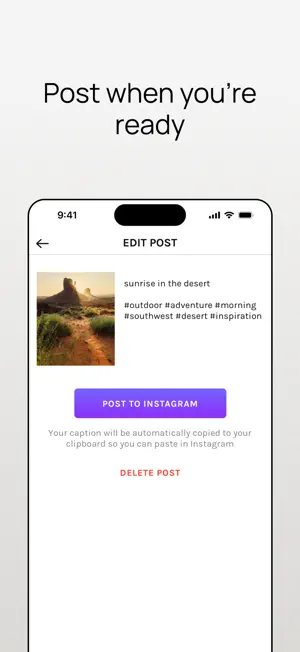 - 準備が整った時点で初めてグリッドから直接Instagramに投稿