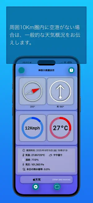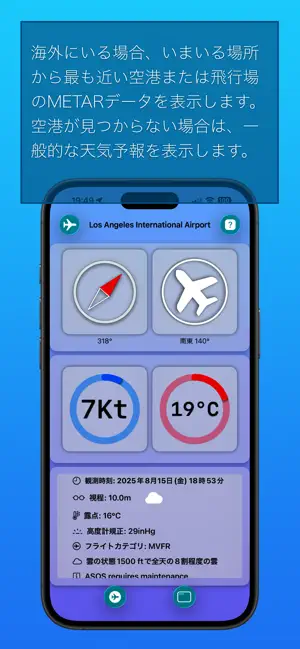 アプリでは、海外にいる場合、最寄りの空港のMETARデータを確認できます。
