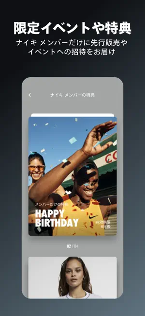 • メンバープロフィール:オンライン ショッピング アプリでアクティビティ、ご注文の情報、購入履歴をシームレスにチェック。 • メンバー特典:誕生日など特別な日をメンバー限定のショッピング特典でお祝い。 • アプリ限定商品・新商品:アプリ限定の商品や新しいイノベーション、季節のスタイルをNIKEアプリでチェック。 • Nike By You:アイコニックなNikeシューズは自分のスタイルに合わせたカスタマイズも可能。選び抜かれたカラーパレットやプレミアムな素材が用意されている。 ショッピングアプリとサービスで仲間とつながり、アドバイスを手に入れよう Nikeアスリートによるトレーニングのヒントをチェック。地域のイベントに参加すれば、あなたもNikeコミュニティの一員に。 • あらゆる人に最適なトレーニングとコーチング:Nikeのアスリート、コーチ、パーソナルトレーナーからの専門的なアドバイス。 • メンバー限定Nike Experiences:お住まいの地域で開催されるイベントを見つけよう。現地でもオンラインでも参加可能。Nikeコミュニティに参加。 • アスリートのガイド:あなたの興味や好みに合わせたおすすめ、メンバー特典への限定アクセスを手に入れよう。 心を動かすストーリーやヒント ショッピング体験がさらに充実。スポーツからカルチャーまで幅広く網羅した、読み応えたっぷりのストーリーを毎日お届け。好きなアスリート、スポーツチーム、商品をフォローして、NIKEアプリを最大限に活用しよう。 • メンバー向けホーム画面:厳選された新しいNikeのストーリーをチェック。毎日更新。 • 通知でよりスマートにショッピング:もうスニーカーの発売を見逃さない。プッシュ通知をオンにすれば、最新のランニングシューズ、トレンドアイテムの発売、アスリートとのコラボやイベントに関する情報がゲットできる。 • アパレル&スニーカーのトレンド:エキスパートやNikeアスリートのアドバイスをウェア、アクセサリー、シューズのスタイリングに取り入れよう。 • 選び抜かれた商品コレクション:トップに君臨するNikeアスリートの力の源泉となっているウェア、シューズ、ギアをチェック。ランニングシューズ、バスケットボールシューズをはじめとするさまざまなアイテムに取り入れられた最新のイノベーションとは? NikeとJordanから発売される最新スポーツアパレルとスニーカーを見てみよう。今すぐダウンロード。