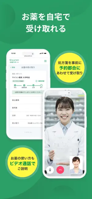 スマートフォンまたはPCから、病院(クリニック)の診察をビデオ通話で受け、ご自宅で処方箋またはお薬の受け取りが可能です。決済はクレジットカードに対応しています。