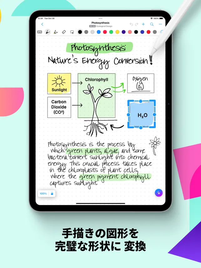 手書きで魅力的なメモやプロ並みの文書を簡単に作成でき、無限に広がるキャンバスでアイデアを練ったり、PDF にシームレスに注釈を付けたりできます。世界をリードする AI 手書き認識テクノロジーを搭載した MyScript Notes は、手書きコンテンツ、テキスト、描画、ダイアグラム、画像が拡張可能なキャンバス上でシームレスに共存するダイナミックなプラットフォームです。直感的なペンジェスチャーを使って、手書きの文字や図形をデジタルテキストや正確な形状に簡単に変換できるため、メモ作成体験が向上します。