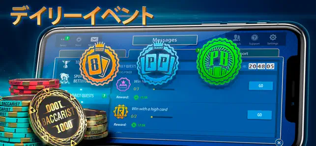 毎日無料チップ:たっぷりのデイリーボーナスで、カジノ・バカラの冒険をスタート。毎日ログインして無料バカラチップと特別報酬を受け取れば、邪魔の入らないバカラアクションを楽しめます。プレイすればするほど、獲得できるバカラボーナスは増えていきます。