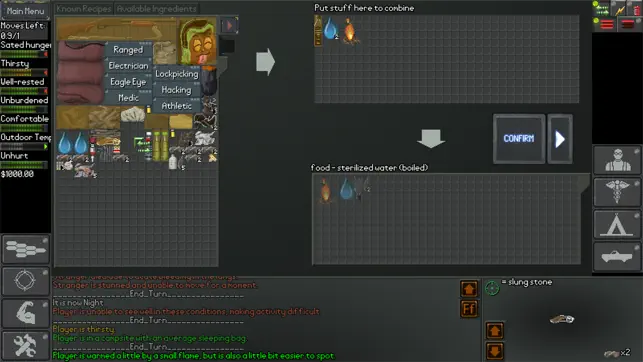 Realistic Metabolism - Hypothermia, fatigue, thirst, hunger, disease, intoxication, shelter...everything is tracked.