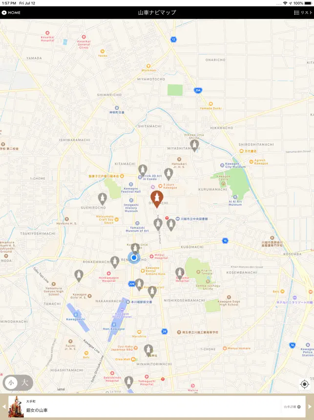 また、山車の一覧リストからお目当ての山車を選択すれば、その山車をピックアップして表示しま‏す‎。