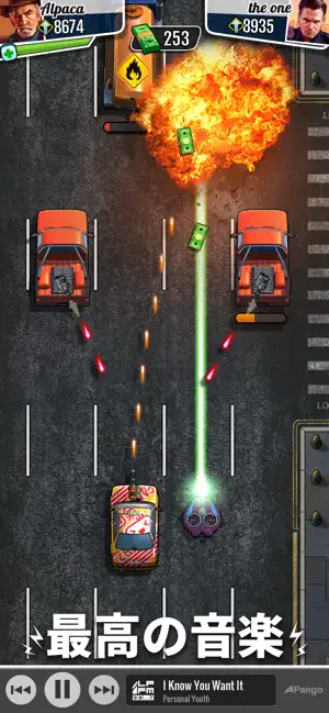ゲーム内の多数の広告にはもううんざりだって? 自分のサウンドトラックを使用して、オフラインでプレイできるよ! Apple Musicアカウントとコネクトして、オーディオONでレースしよう! やみつきになるシューテムアップのレーシングゲーム!