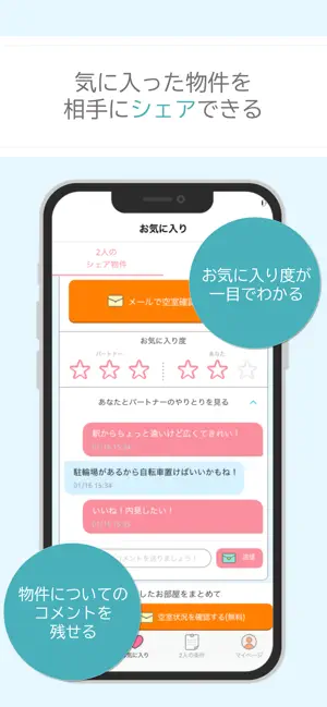 3:気に入った物件はお気に入り度とコメントをつけてパートナーにシェア!