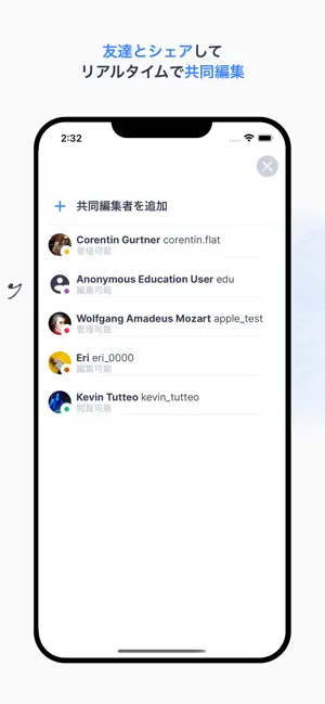 ④楽譜のシェアや共同編集もスムーズ ・作成した楽譜をTwitterやFacebook、ブログで簡単シェア ・友達とリアルタイムで楽譜を共同作成&編集 ・200万人のFlatコミュニティに作品を投稿&コミュニティで人気の曲をチェック