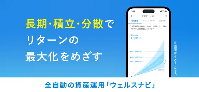 世界水準の資産運用サービスをスマホひとつで実現。本格的な資産運用が1万円からはじめられ、毎月の積立も1万円からご利用できます。