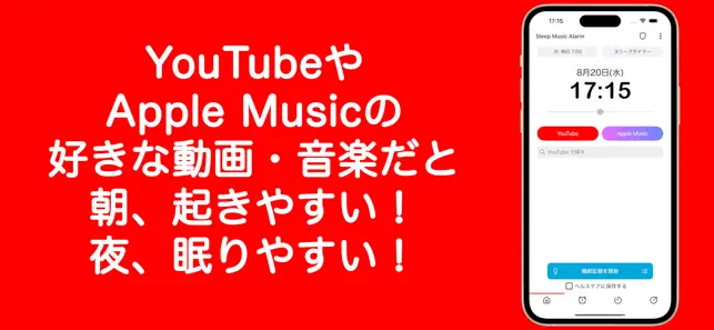 睡眠記録やスリープタイマーも備えた“音楽×睡眠”特化のアラームアプリです。