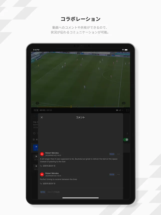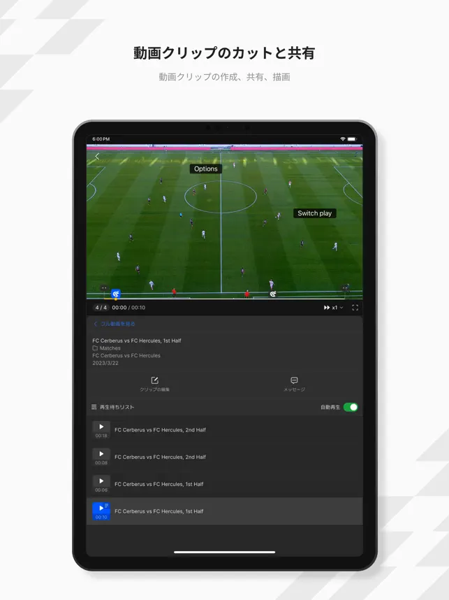 試合や練習の動画を素早くアップロード、視聴、編集できます。編集したクリップを共有したり、ドローイング機能で直接コメントを付けたりして、チーム内のコミュニケーションや戦略を強化できます。