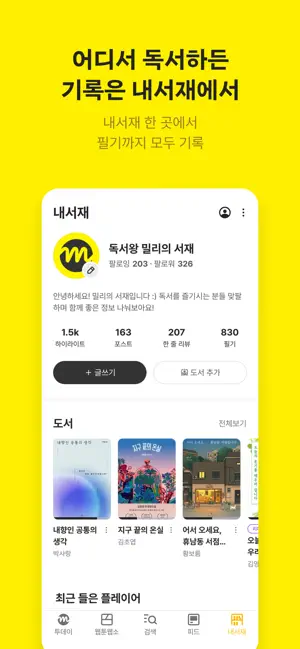 앱 로고 이전 로고가 나은 거 같아요옹,,,, 노란색에 연보라색이 밀리의 서재의 컬러라고 생각합니다 !! 지금은 너무 카톡 같아요~~ 이전 로고로 다시 돌아와주세용