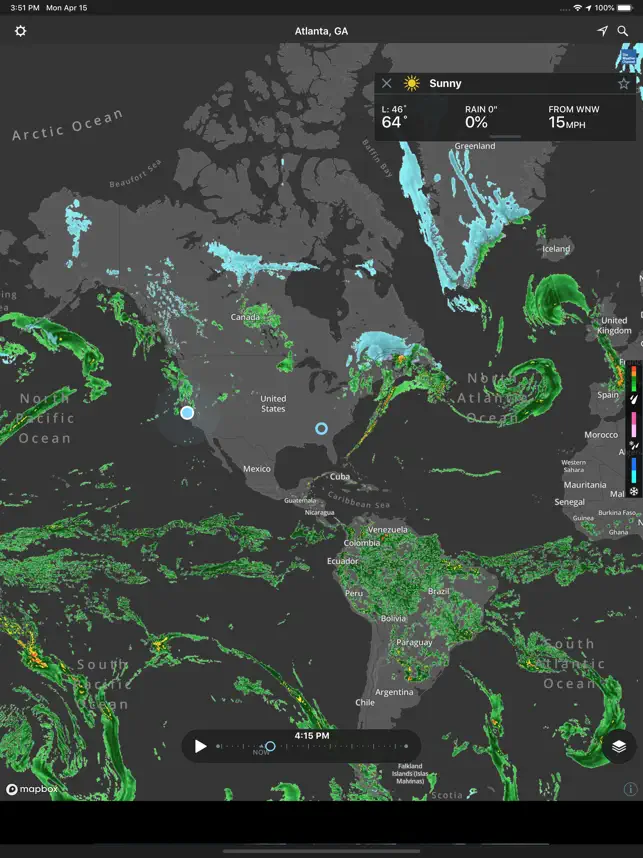iOS向けStorm Radarアプリで今までにない天気予報を活用しましょう!過去から現在まで8時間分のフルスクリーン&高解像度(HD)レーダーを備えたインタラクティブマップ、先進のストームセルトラッキング、リアルタイム悪天候アラートにより、天気予報を視覚化できます。iPhoneまたはiPadの現在の気象状況、日ごとの予報、時間帯別の予報などを一目で確認できます。ポートレートモードとランドスケープモードをぜひお試しください。