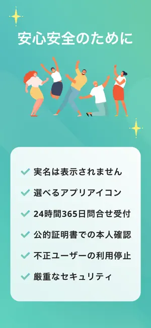 • いいア‏プリ‎ 24時間・365日の監視体制、年齢確認の必須化とのことで‏、‎非常に運営さんがしっかりしているのだな、という印象。実際サクラ?にもあったことないのでいいア‏プリ‎だと思いま‏す‎。