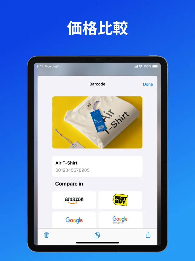 QR Airはスマート商品スキャナーおよび価格チェックツールとしても機能します。ウォルマートスキャナーや一般的な価格スキャナーとして利用し、即座に価格を比較し、賢い買い物判断ができます