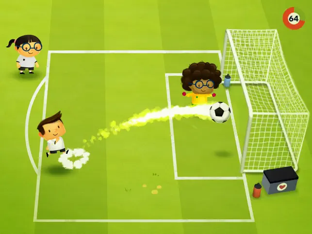 相手チームの間をパスですり抜けよう。ボールを奪うんだ。けれども注意深く。ファウルをすると審判がイエローカードを手にするぞ。レッドカードだときみはフィールドから退場だ!